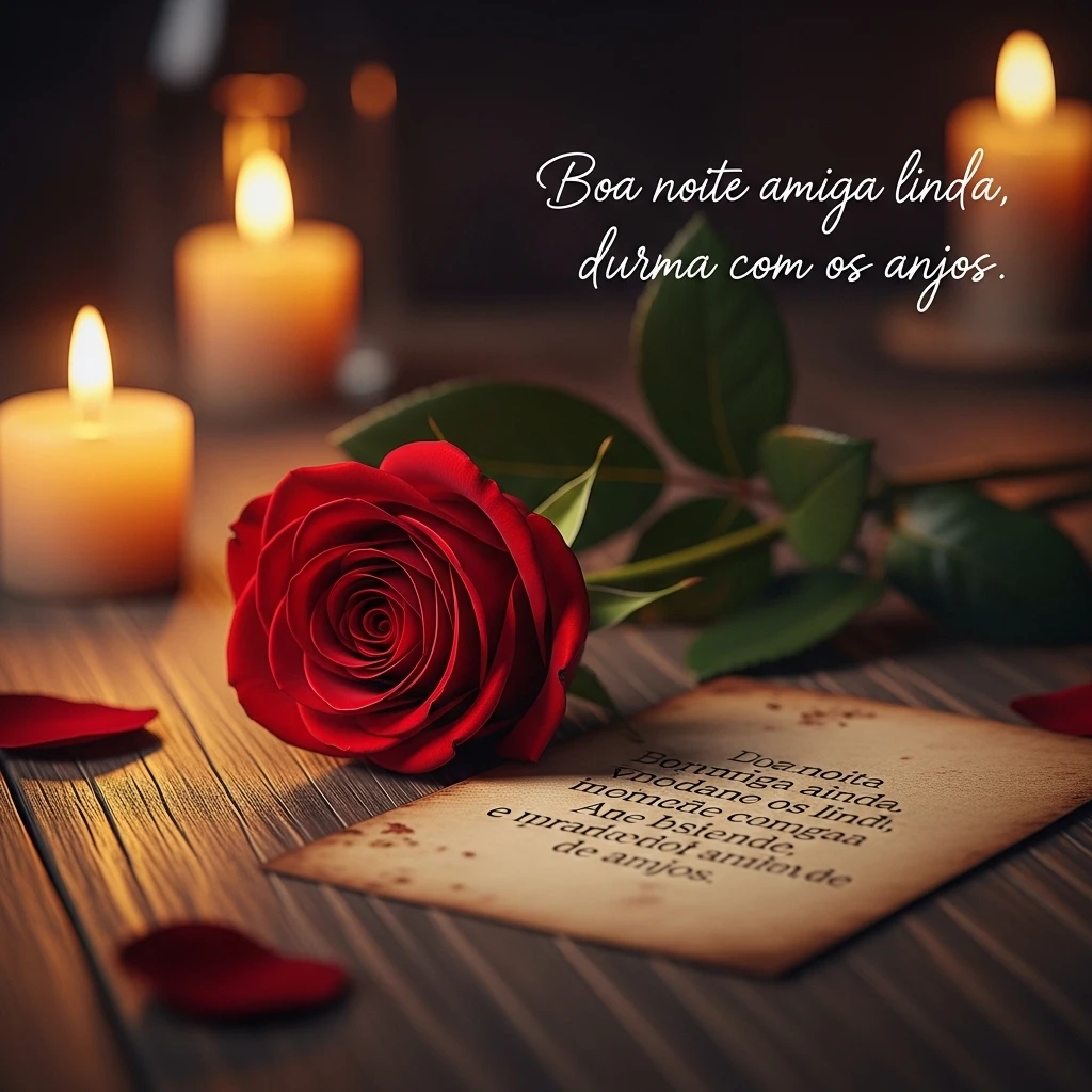 Boa noite amiga linda, que o cuidado de Deus te envolva como um manto. Sinta-se segura e amada. Bom descanso, querida.